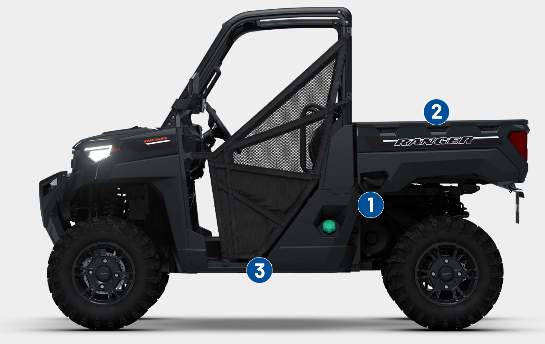 Get more done in a day with RANGER DIESEL. Its Kubota 3 cylinder engine delivers power and performance to help you get the job done.