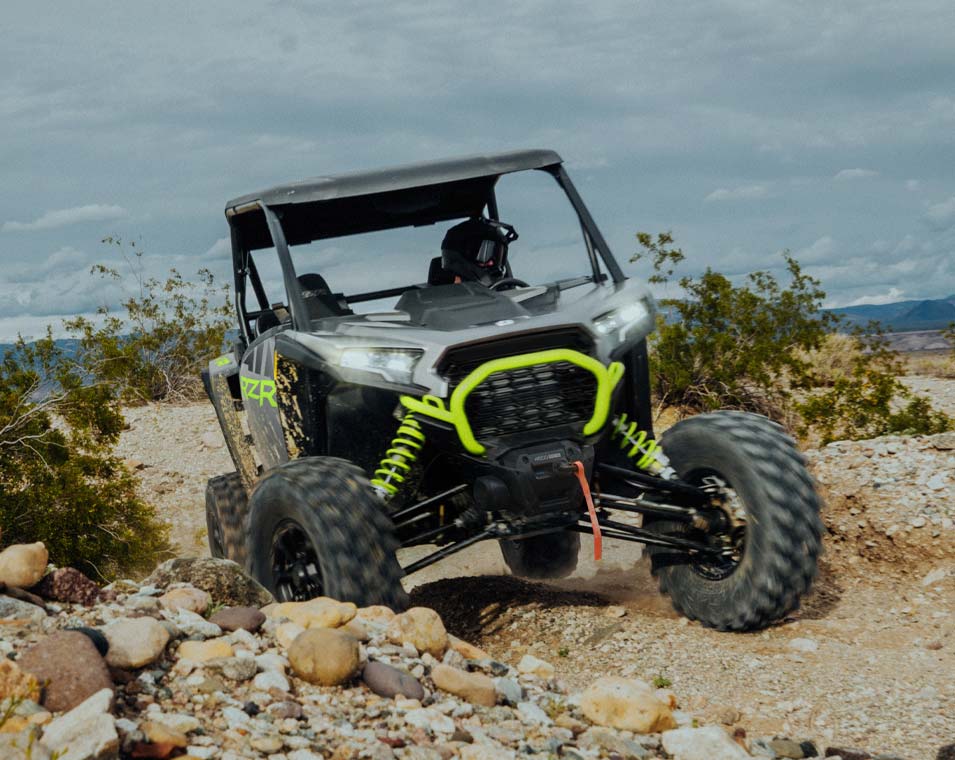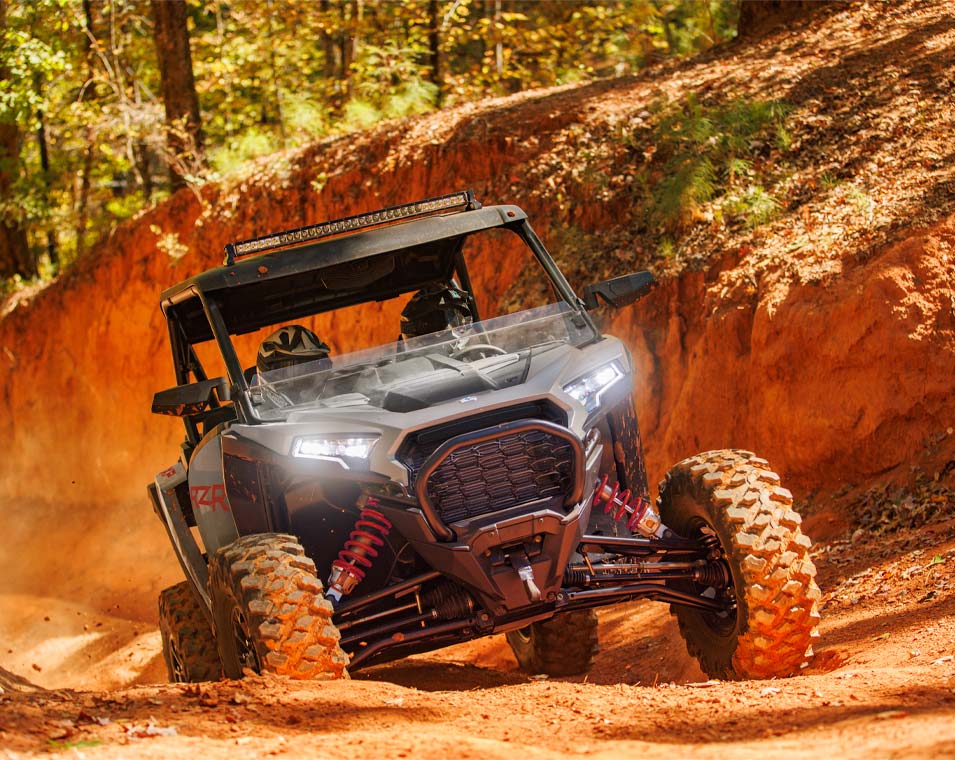 The next revolution of RZR DNA with responsive performance, traction and clearance, and trail agility to take on the off road.